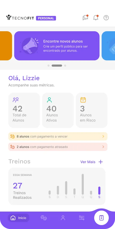 Tenha em mãos um aplicativo que pode oferecer uma experiência única: seja pra quem está iniciando ou para o profissional que já tem muitos alunos e precisa de mais funcionalidades.