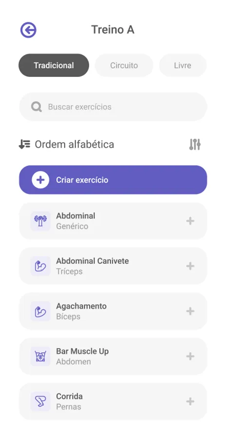 Nome do treino personalizado | ✕ | ✕ | ✓ |