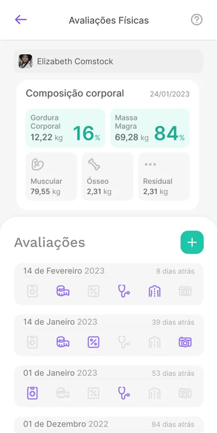 Receba feedbacks logo que o aluno finaliza o treino, escolha o tipo de avaliação física que preferir e acompanhe a evolução dos seus alunos de forma interativa e visual.